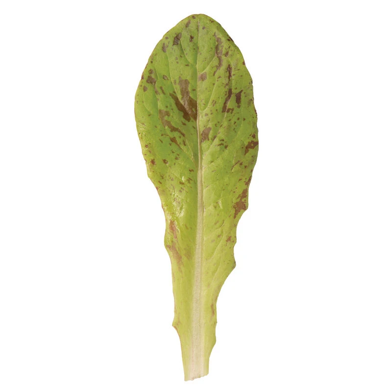 Spots darken from red to maroon as the lettuce matures. More refined selection of Freckles. Our thanks to Frank Morton of Wild Garden Seed for developing this eye-catching romaine variety. MT0-30. USDA Certified Organic.