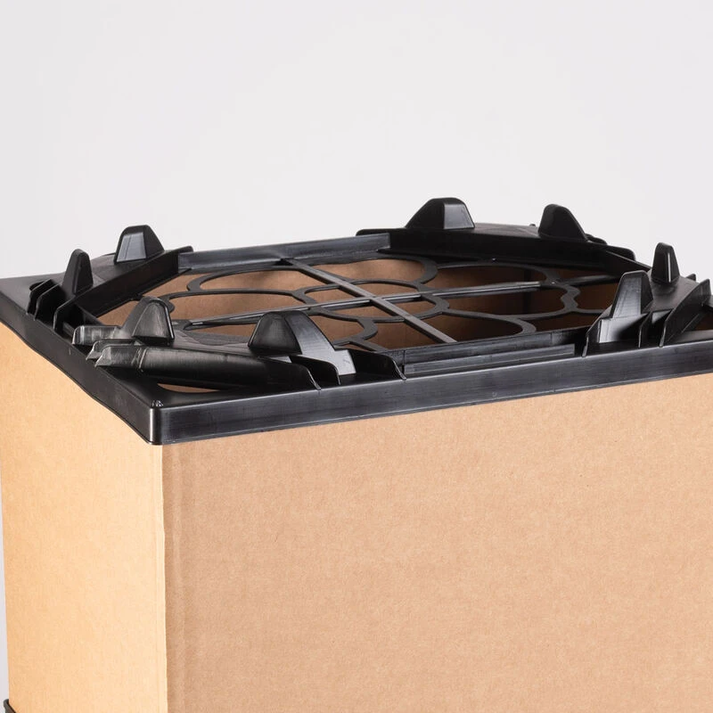 An all-in-one flower harvest, transport, and display system that provides optimal conditions for cut flowers on each leg of their journey. The main components of the Procona System are: 1) a plastic container that can be filled with water and flowers; 2) a cardboard collar for increasing height and protecting blooms during transport; 3) and a ventilated lid that provides a stable base for the next row of stacked containers. The small container footprint allows for high loading capacity, and the side and top ventilation allows all flowers to receive adequate air flow to stay fresher longer. Once flowers arrive at market, simply remove collars and lids for a beautiful display. A variety of sizes and collar heights in two Procona Series (Florida and Valencia) are available to accommodate different flower sizes and stem lengths. Procona containers can also be topped with lids to create professional, reusable vegetable CSA boxes.