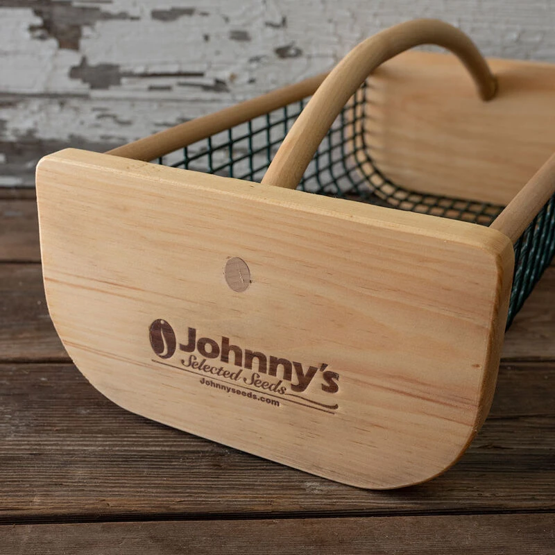 Originally used by New England clammers, the garden hod allows for harvesting and washing plants, fruits, and vegetables all in the same basket. Spray your harvest with a hose or dunk the whole hod in a larger container of water for most effective rinsing. Crafted in Maine with pine ends, birch dowels, a steam-bent oak handle and the same lobster trap wire as our compost bin – a durable stainless steel mesh, covered with food-grade vinyl. Weather resistant, hand-rubbed oil finish. Hundreds of other uses – both inside and out. Makes a great gift any time of the year. Holds 1 peck (8 quarts), basket is 16″L x 9″W x 5 1/4″ deep.