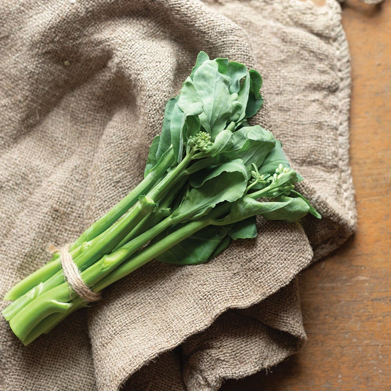 Florets are tender and sweet with a mild flavor. May be transplanted like our other mini broccoli varieties or direct sown at 4–6″ in the row. Our earliest mini broccoli, it is 2–3 days earlier than Happy Rich though it has a shorter harvest period. Melody has a more vigorous plant and higher yield potential than Noble Jade. Pinching not recommended.