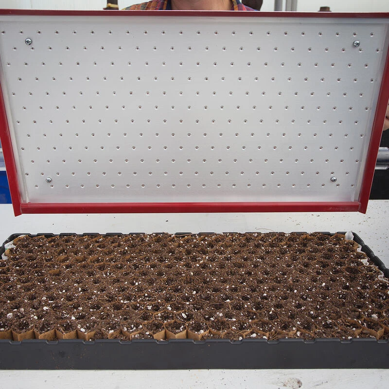For use with the Precision Vacuum Seeder for Paperpot Trays only. 264 medium countersunk holes. Made of precision-machined aluminum. Made in the USA. Crop recommendations from our trials: