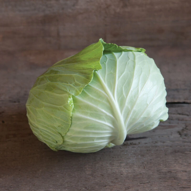 Midsize, flat heads stand well without splitting. Tender leaves are very thin, sweet, and crisp — perfect for cole slaw or stir-fries. The leaves, used whole or cut into squares, are also suitable for wraps. Widely adapted for spring, summer, and early fall harvest. Avg. weight: 3 1/2 lb. Unsized seed.